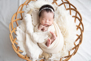 カゴの中にすっぽり入るサイズの新生時期だからこそ撮れる癒しの写真!